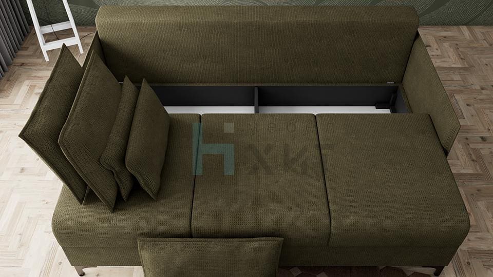 Под седалката на канапето е вградена удобна ракла за багаж, в която може да съхранявате завивки, възглавници и други вещи. Това допълнително пространство за съхранение помага за поддържане на ред и организация в дома.