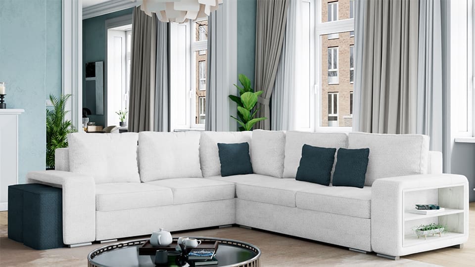 - Интегрирана ракли за багаж: Диванът разполага с отделения за съхранение на завивки, възглавници или сезонни вещи, осигурявайки повече място за подредба в дома.