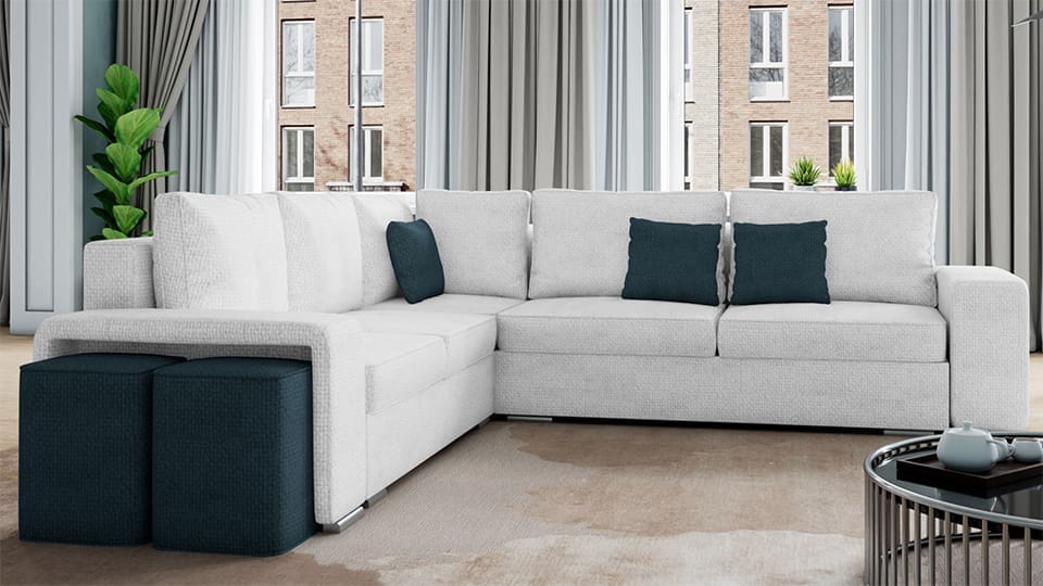 - Удобни възглавници: Конфигурацията включва шест големи облегални възглавници и три декоративни възглавнички, осигуряващи мекота и уют.