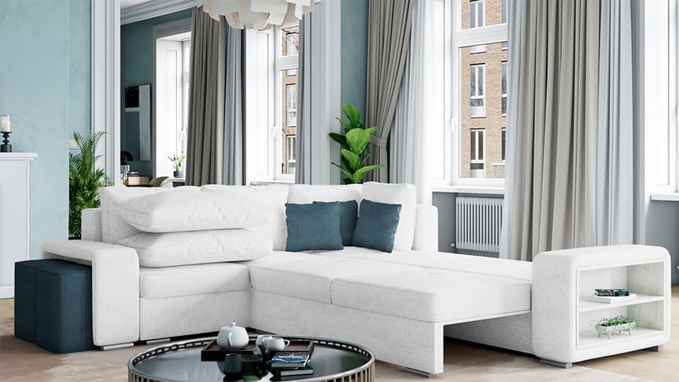 - Функционалност: Лесно преобразуване в легло с голяма спална площ, което прави модела идеален за гости.