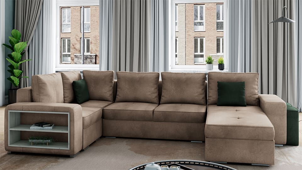 - Големи възглавници: Моделът разполага с шест големи облегални възглавници, които осигуряват комфорт при сядане, и две декоративни възглавници за допълнителен уют. Тези елементи придават на мебела завършен вид и гарантират максимално удобство.
