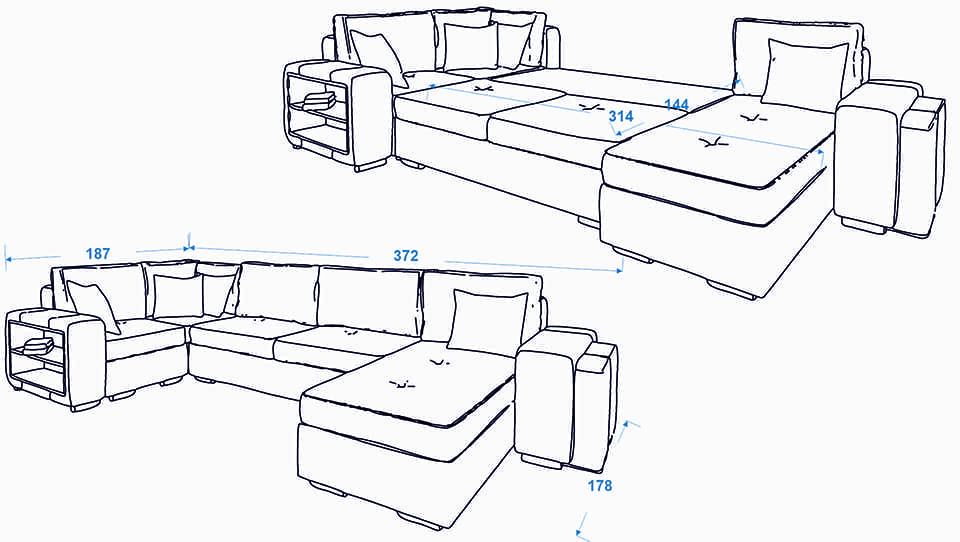 - Просторна спална площ: Един от акцентите на Конфигурация 1 е нейната възможност за трансформация в легло с размери 314 см x 144 см. Тази функция я прави идеален избор за малки апартаменти или домове, където оптималното използване на пространството е приоритет.