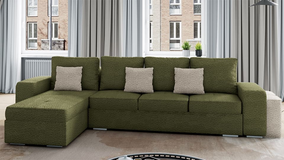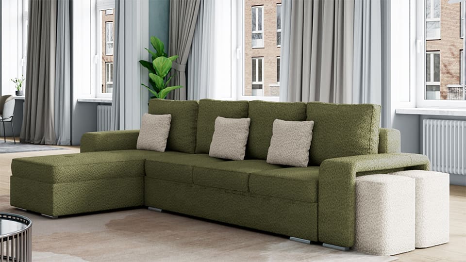 Съчетавайки комфорт, функционалност и стил, Конфигурация 2 е чудесен избор за всяко жилище. От просторната спална площ до интелигентно вградените табуретки и ракли, този диван гарантира удобство и практичност, които ще оцените ежедневно.