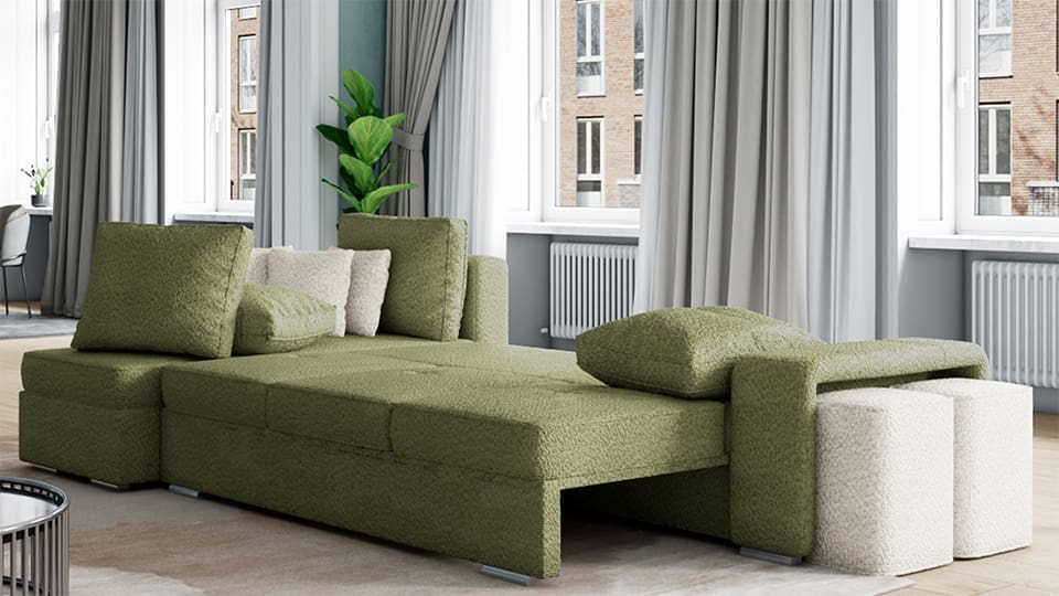- Просторна спална площ: Модулната система лесно се преобразува в легло с размери 262 см x 144 см, което я прави подходяща както за ежедневна употреба, така и за неочаквани гости. Спалната площ е комфортна и практична, осигурявайки пълноценен сън.
